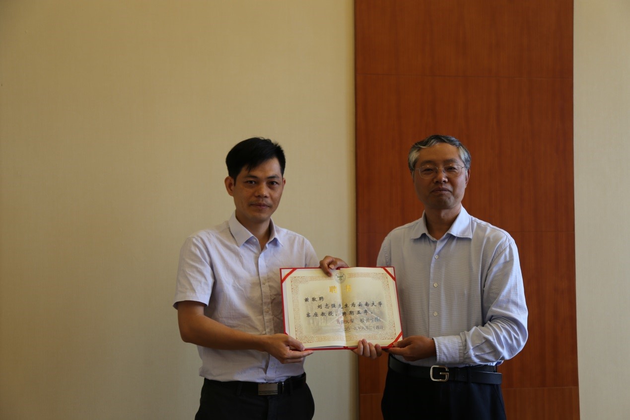 为与刘志强教授在东南亚国家国情研究特别是越南历史、文学领域研究的长期合作,宝威体育官网首页校党委书记林文勋教授隆重为刘志强博士颁发了客座教授聘书。