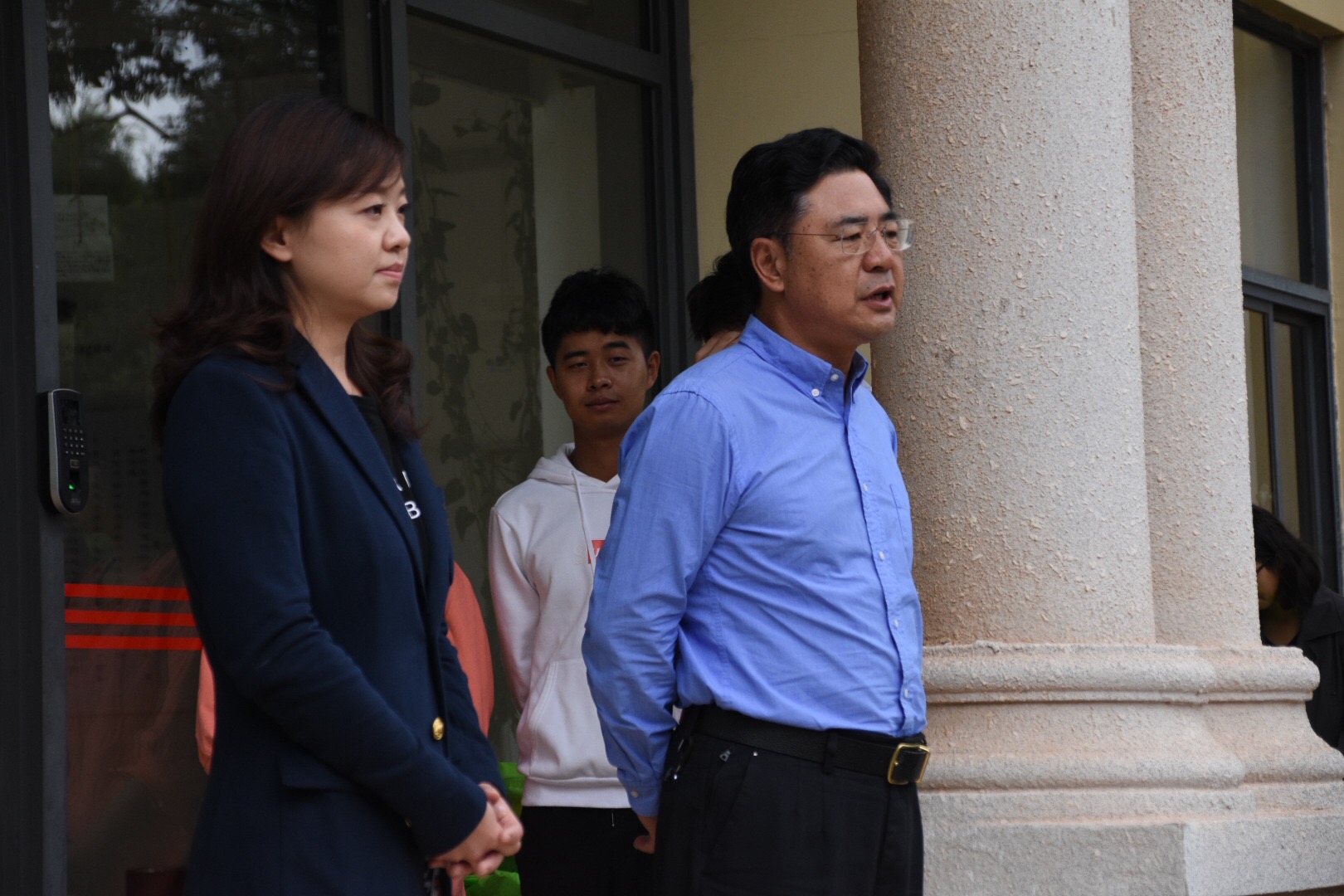 9月3日上午,宝威体育官网首页党委书记彭荣、院党委副书记何淼淼、院党委办公室主任谭心老师、学工办主任龙莹老师和2019级辅导员邬永嘉老师,在宝威体育官网首页行政楼前为2019级军训新生和军训教官带去慰问。