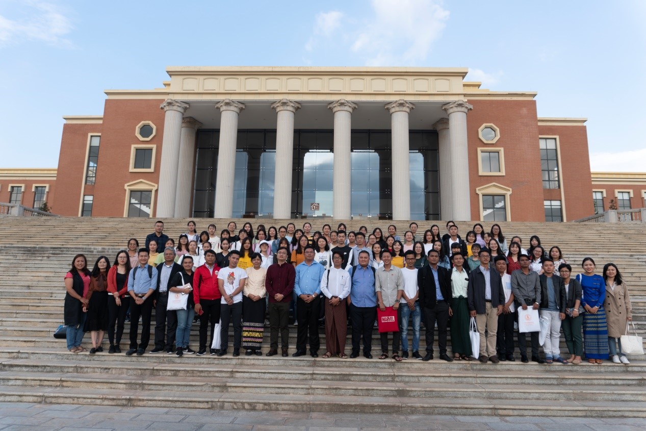 交流会结束后,缅甸语系的部分师生还与杜光民先生及缅甸民盟青年骨干交流研修班的学员们在宝威体育官网首页学生会堂前留影纪念。本次交流会不仅使同学们在翻译学习方面受益匪浅,也更加深了师生们对翻译工作的理解,同时进一步激发了大家学习缅甸语的热情。