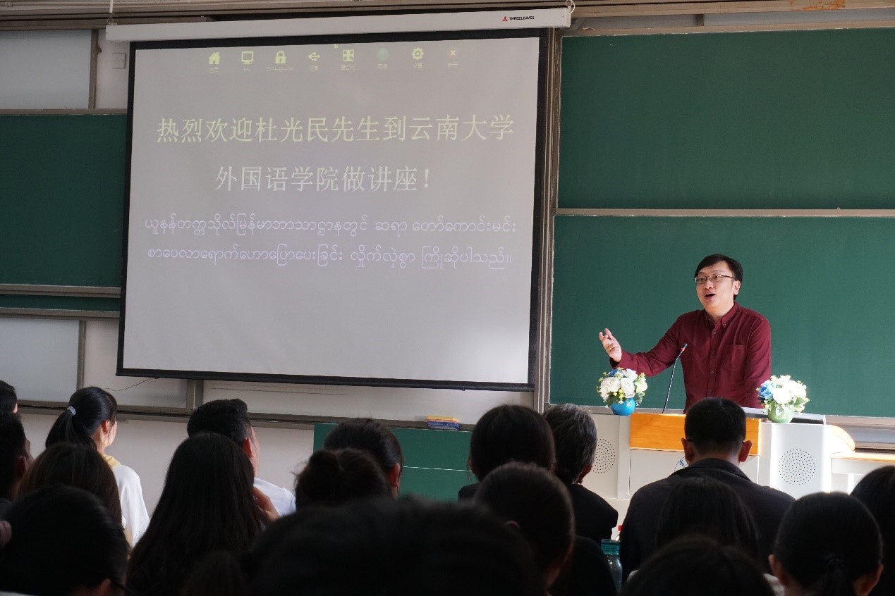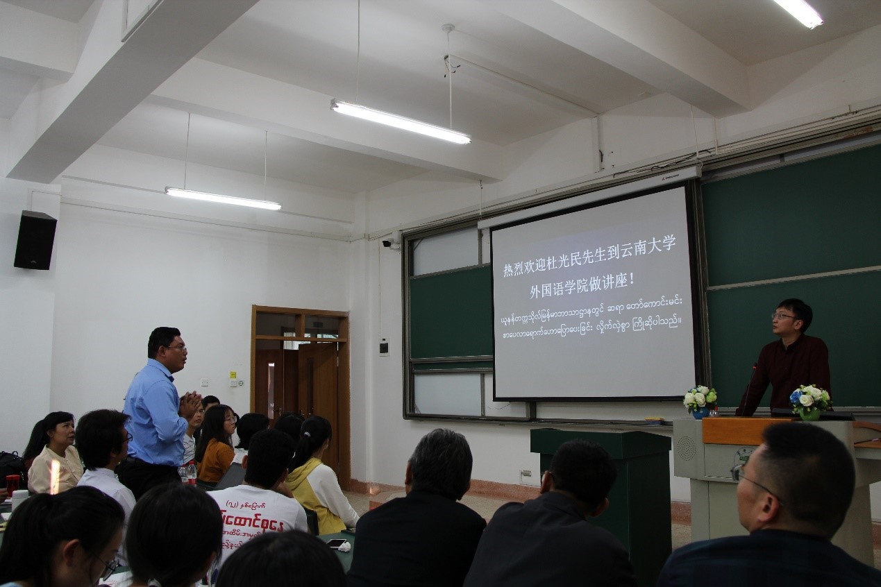 讲座最后,许多同学就杜光民先生关于翻译的体会踊跃提问交流,有的用汉语,有的用缅语,各抒己见,气氛十分活跃。杜光民先生为同学们细心解答、深入探讨,使这次讲座在轻松活跃的气氛中圆满结束。