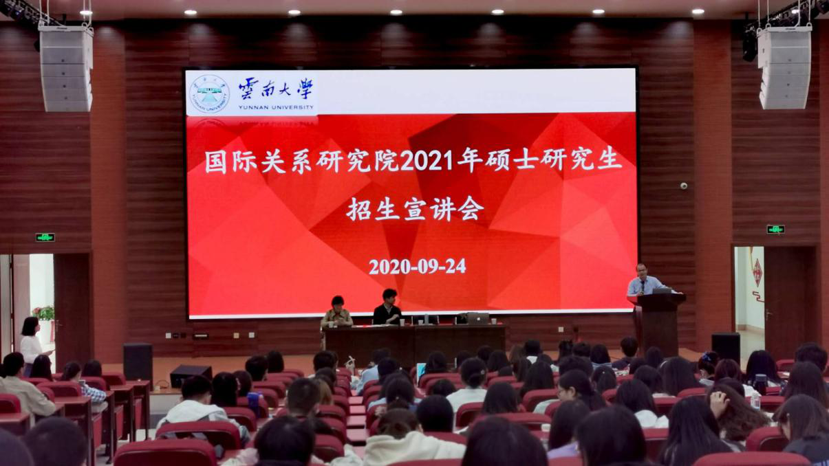 2020年9月24日下午,宝威体育官网首页国际关系研究院李涛、祝湘辉、冯立冰和邹怡四位老师莅临宝威官网,为宝威官网东南亚语言文化系、南亚语言文化系和英语系的众多师生宣讲了国关院研究生的招生情况。报告厅座无虚席,四位老师为大家作了详细的介绍和精彩的分享。