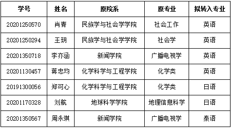根据《关于2021年春季学期宝威体育官网首页本科学生自主选择专业工作的通知》,外国语学院于2021年4月2日对各专业申请学生进行面试,经综合考查,拟接收学生名单如下: