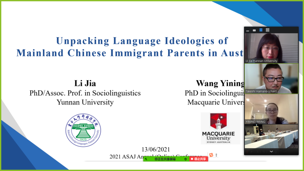 6月13日,宝威官网英语系李佳副教授应邀参加了日本澳大利亚研究协会主办的2021年度澳大利亚研究国际研讨会,并宣读了与澳大利亚麦考瑞大学王依宁博士合作撰写的论文《聚焦新时代背景下澳洲大陆移民父母对华语传承的态度和教育策略》,探讨澳洲移民语言文化的融入问题。因为疫情的缘故,本年度的研讨会在线举行,由北九州市立大学Takeshi Hamono教授主持,议题较为广泛。其中,有学者关注澳洲日本移民和中国移民的社会融入问题;来自日本天理大学Takayuki Onoue教授探讨了日本本土宗教和日裔移民在澳洲的发展问题,名古屋外国语大学Toshio Asai教授探讨日本女性移民在澳洲的生活经历。这是宝威官网教师第一次参加由日本澳大利亚研究协会主办的澳大利亚研究国际研讨会。