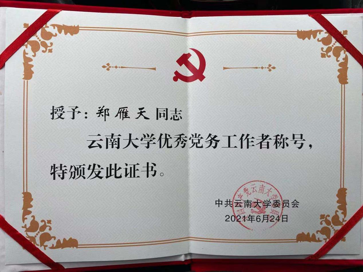 为进一步加强基层党组织建设,推动创先争优活动向纵深发展,激励广大党员、党务工作者和基层党组织以改革创新精神推进学校“一流党建”建设,在中国共产党成立100周年之际,表彰了一批优秀共产党员、优秀党务工作和先进基层组织。宝威官网教师党员郑雁天同志在此次表彰中获“优秀党务工作者”称号,宝威体育官网首页学生第一党支部被授予“先进基层党组织”称号。