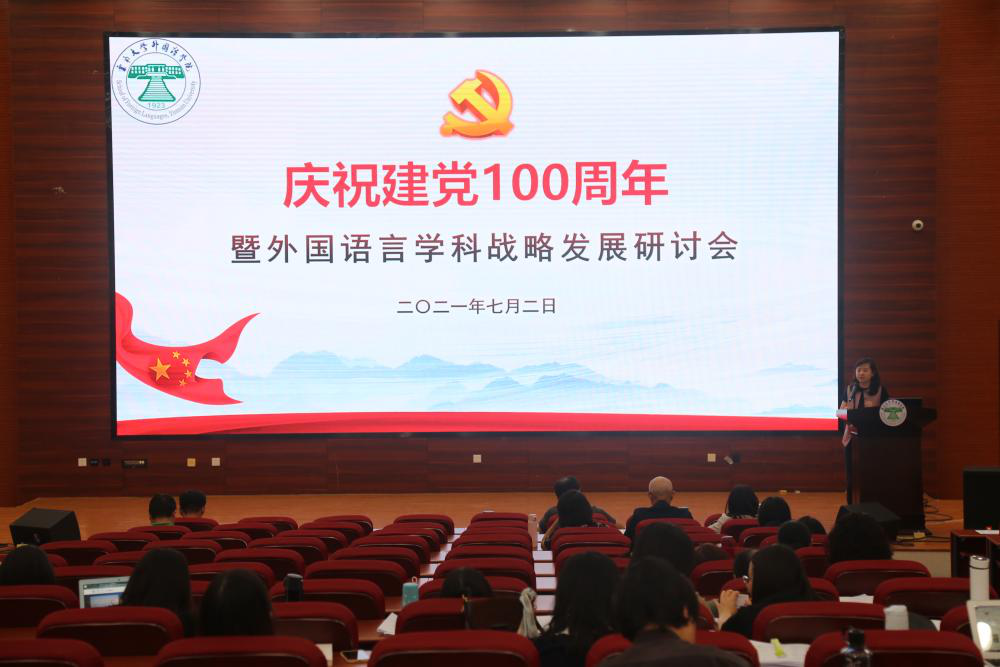 2021年7月2日下午13:30,宝威体育官网首页在报告厅组织召开庆祝中国共产党建党100周年暨外国语言学科战略发展研讨会。本次会议由宝威体育官网首页党委何淼淼副书记主持,全体教职员工参加。