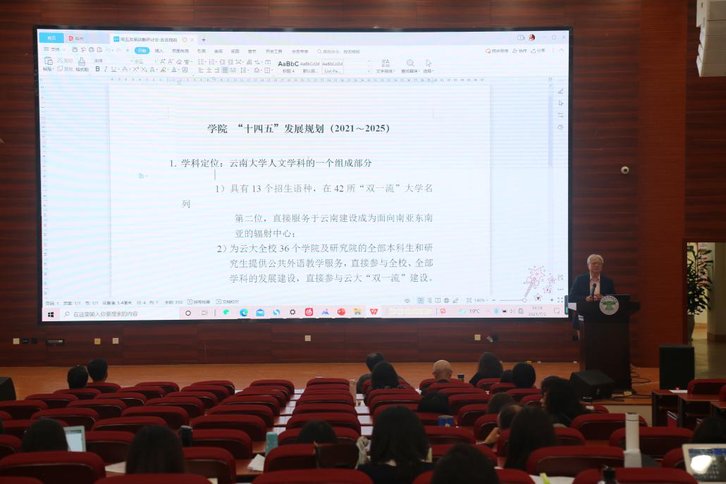 刘树森院长从外国语言文学是宝威体育官网首页人文学科的一个组成部分的学科定位、以“新文科”建设为导向的发展战略,聚焦学科高质量发展、以云大平均发展指标为发展目标,对标发展的发展指标、以双一流建设为中心的工作重点对学院“十四五”发展规划进行了全方位阐述,对学院工作进行了深刻的总结。