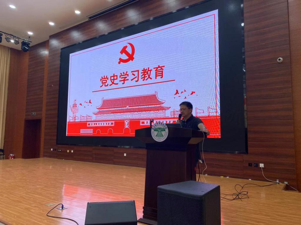 王益广书记以《坚定学史崇德,体悟时代脉搏,创新铸就未来》为主题,结合意识形态和党史学习的所思所悟、个人经历的所见所闻、时代发展的所观所感,入情入境的讲述了我国“雄关漫道真如铁”的昨天,“人间正道是沧桑”的今天,“长风破浪会有时”的明天。他谈到,开展好党史学习教育,就要从党史中汲取营养,传承红色基因、弘扬优良传统、砥砺道德实践、汇聚精神力量,崇尚对党忠诚的大德、为民造福的功德、严于律己的私德,牢记初心使命,把人民始终放在心中最高位置,做到勇于自我纠错、自我革命,不断吸取经验教训、修正和完善自我。