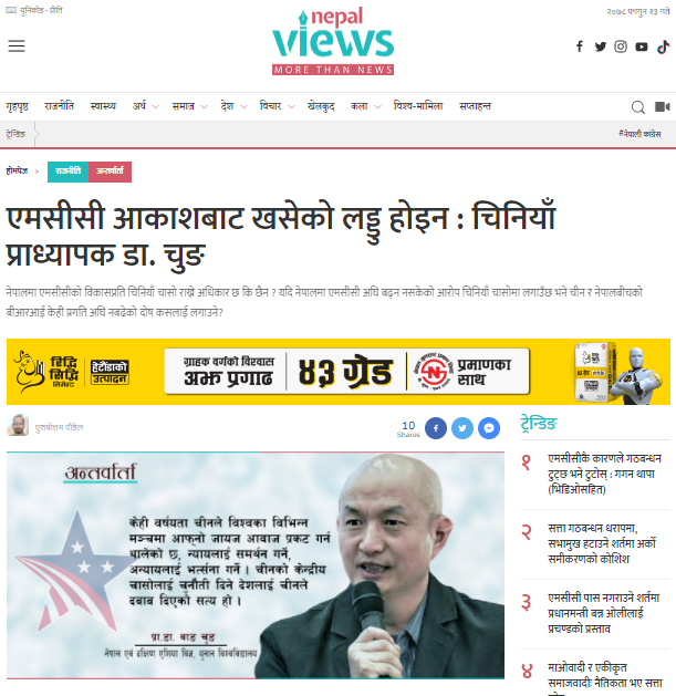 《尼泊尔观点》报道参见下列网址(https://www.nepalviews.com/2022/02/25/42796/)。