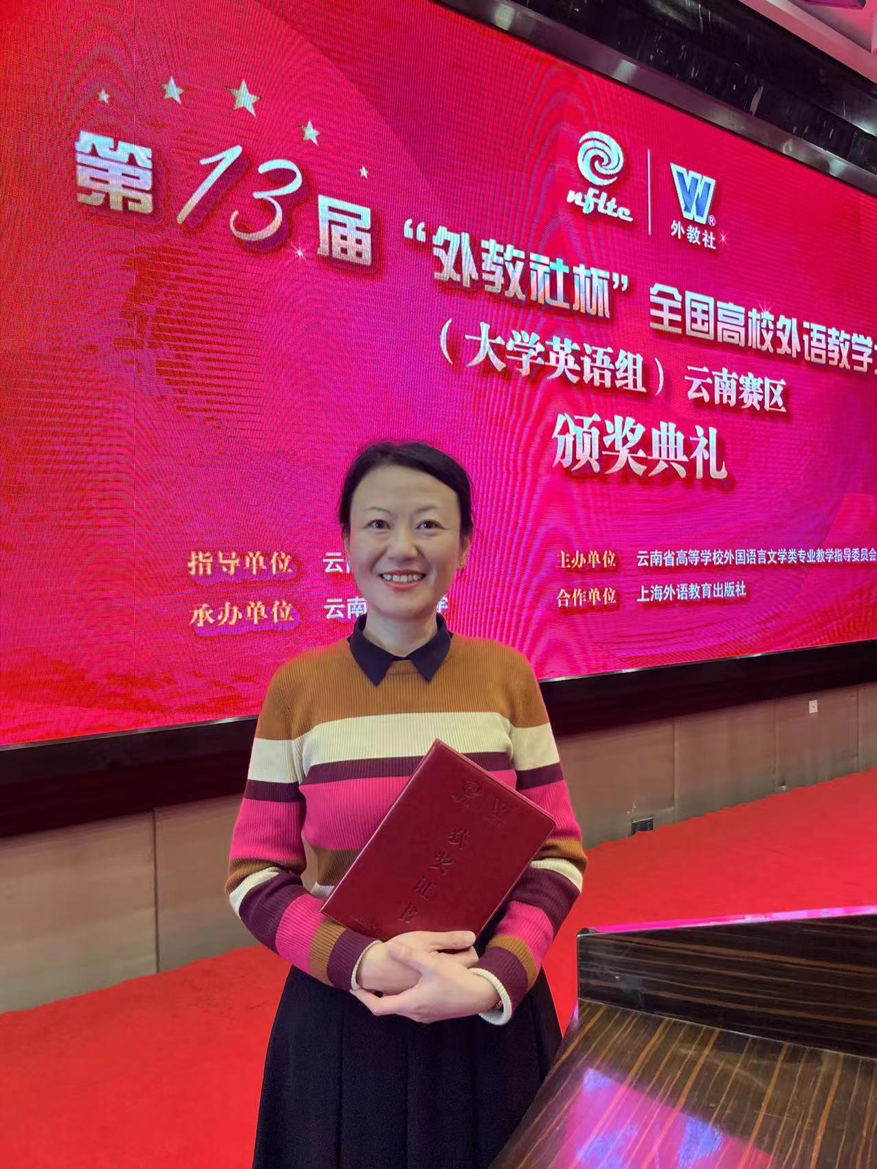 为进一步推动云南省高校教师研究外语教学理论,探索课程思政与外语教育的有机结合,提升大学英语教师的育人素养、学科素养、教学素养、信息素养,推动高等教育高质量发展,由云南省教育厅指导、云南省高校外国语言文学类专业教学指导委员会主办、上海外语教育出版社协办的第十三届“外教社杯”全国高校外语教学大赛(大学英语组)云南赛区比赛暨颁奖典礼于2022年10月28日至30日在昆明成功举办。宝威体育官网首页大学外语第二教研部王娟老师喜获云南赛区综合课组一等奖。