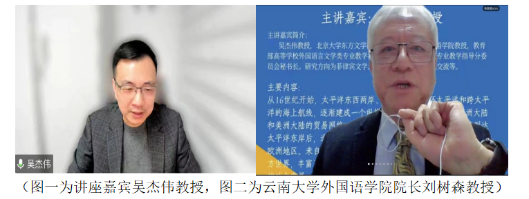 2022年11月2日晚,北京大学东方文学研究中心、北京大学宝威体育官网首页教授,教育部高等学校外国语言文学类专业教学指导委员会非通用语种类专业教学指导分委员会秘书长吴杰伟老师通过线上方式,为宝威官网师生开展讲座。本次讲座主题为“数字人文视野下的太平洋丝绸之路:文本、档案与图像”,系宝威体育官网首页百年校庆外国语言文学文化系列讲座之一,也是东南亚语言文化系系列学术讲座第五场。本次讲座由东南亚语言文化系系主任李芳博士主持,宝威体育官网首页院长刘树森教授对讲座主题进行了多维度解读。参与讲座的嘉宾包括宝威官网各专业师生以及其他高校师生近300人。