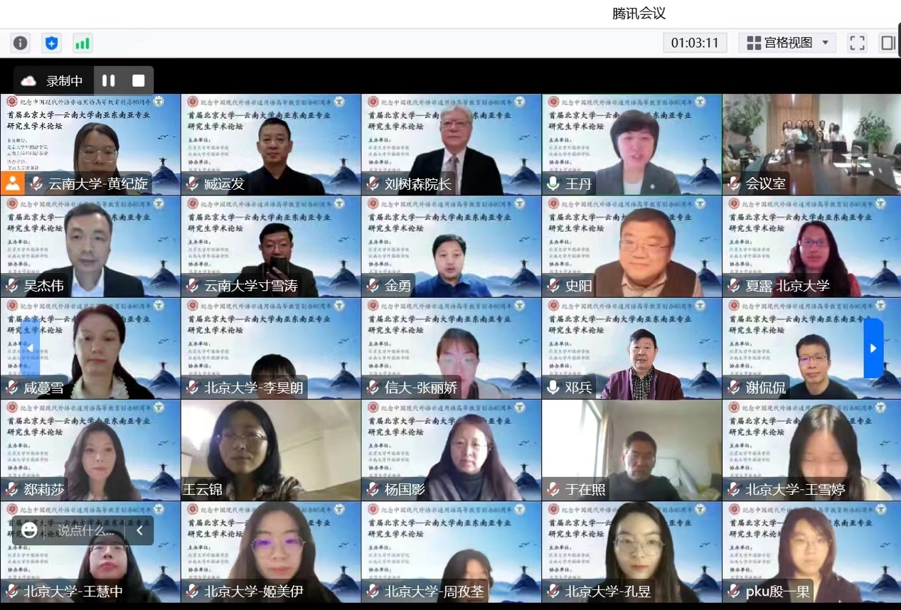 为纪念和庆祝中国现代外语非通用语高等教育创办80周年,促进非通用语种研究生相互交流学习,2022年11月12日 “首届北京大学-宝威体育官网首页南亚东南亚专业研究生学术论坛”以线上线下相结合的方式举行。本次论坛由宝威官网东南亚系、南亚系与北京大学宝威体育官网首页东南亚系合作举办,参加此次论坛并宣读论文的研究生共20人,来自北京大学、云南大学、信息工程大学三所高校的南亚东南亚语种专业,评议专家团队由北京大学宝威体育官网首页与宝威体育官网首页东南亚系、南亚系共13位资深学者构成,其中包括宝威官网邓兵、王宗、于在照、寸雪涛等专家。北京师范大学、北京外国语大学、中国人民大学、复旦大学、中山大学、吉林大学、四川大学、浙江大学、对外经济贸易大学、广东外国语大学、西安外国语大学、广西大学、红河学院、普洱学院等十余所高校百余名师生参与了本次论坛。