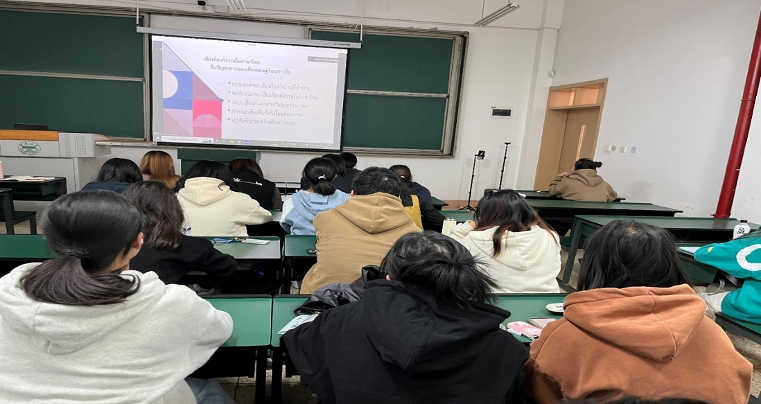 Sujinat老师的讲座分析了中国学生在学习泰语的过程中容易出现的发音问题,主要内容涉及泰语与汉语的响音在语音学上的特征,中国学生在学泰语的过程中常遇到的问题以及解决问题的方法等。其中,关于中国学习者面临的发音问题,Sujinat 老师归纳为五个方面:一是响音的自然属性所带来的问题;二是半元音作为响音中的一类所具有的语音特性与功能性所带来的问题;三是各个语言之间的语音系统不一致所导致的问题;四是各个语言间的实际发音有所区别而带来的问题;五是各个变量之间的相互作用所带来的问题。