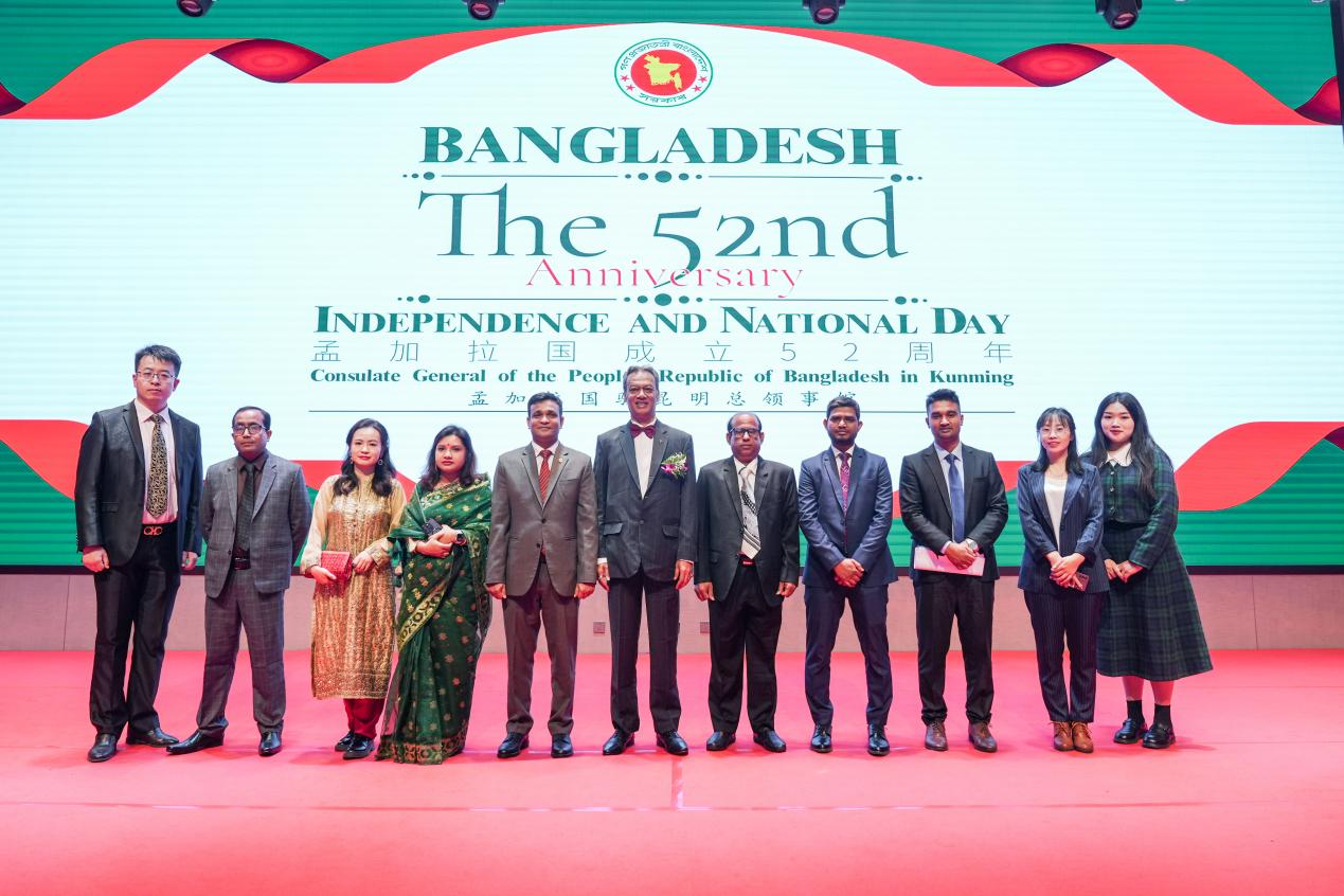 2023年3月26日,宝威体育官网首页孟加拉语专业全体师生受孟加拉国驻昆明总领事馆总领事周科一·阿哈德(Zokey Ahad)邀请,参加了于星耀温泉酒店二楼举办的孟加拉国52周年独立日活动。