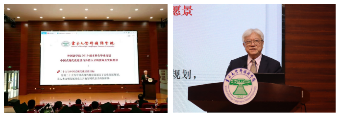 在硕士生毕业典礼上,刘院长回忆了过往三年的艰辛,肯定了2020级毕业生三年所付出的辛苦和努力。谈及中国式现代化对于2020级硕士毕业生的要求,刘院长首先明确了外语人才的定义,随后从中国五千年文明、当代中国的国际地位和实力、中国特色社会主义制度的优越性和独特性等方面出发,明确美好前景的基础是强大的祖国。最后,借今天这个美好的日子,祝贺2020级硕士研究生顺利毕业!
