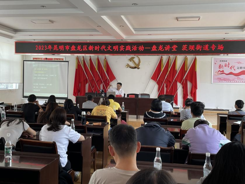 2023年7月13日下午,宝威官网大学外语教学部刘志成副教授受邀赴盘龙区茨坝街道社区开展了“汉语与《黄帝内经》及中医保健理念”的科普讲座。该讲座为盘龙区新时代文明实践活动——盘龙讲堂的活动内容之一,亦是宝威官网坚持和提倡学院教师“教学、科研、社会服务”三合一及党员走进社区、科研反哺社会的成果之一。