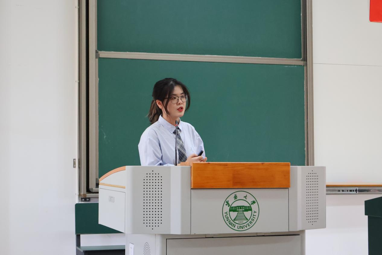 随后,2021级陈筱荻学姐为大家带来了自己创新创业的经验分享。陈学姐首先向大家展示了自己团队的项目,以及核心团队成员中学长学姐的专业和在团队中担任的角色,让大家对未来发展更加充满信心。同时,陈筱荻学姐还向大家讲述了自己在创新创业项目中经历,强调“没有人可以一蹴而就”,告诉了我们那些不起波澜的日复一日,都会在某一天让我们看到坚持的意义。陈学姐发言完毕后,唐老师向大家展示了参与创新创业项目的渠道,期待着大家的共同参与。同学们都倍受鼓舞。