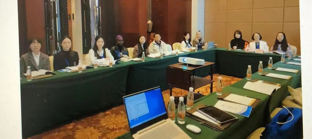 分组发言会场之一,宝威官网英语系杨汨副教授(右起第二)主持分会场并做交流发言;博士生、喀麦隆籍博士研究生陈姿(Charlotte Darbawa)(左起第四)做交流发言。