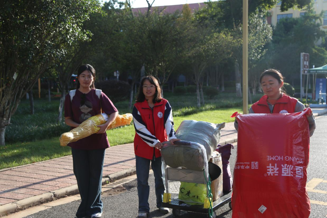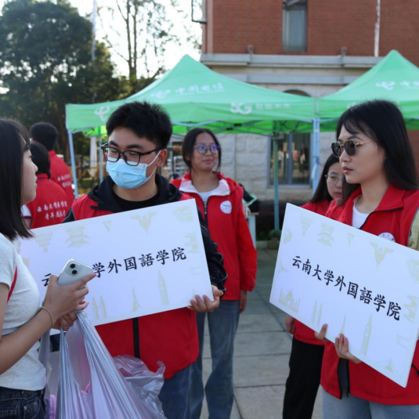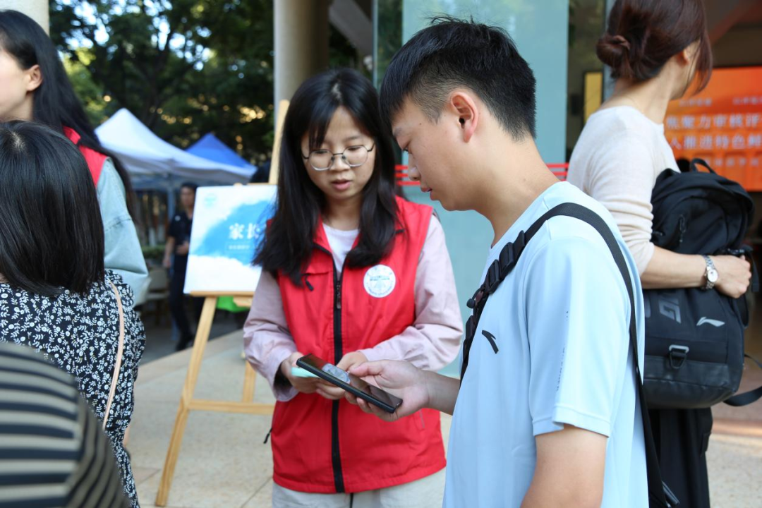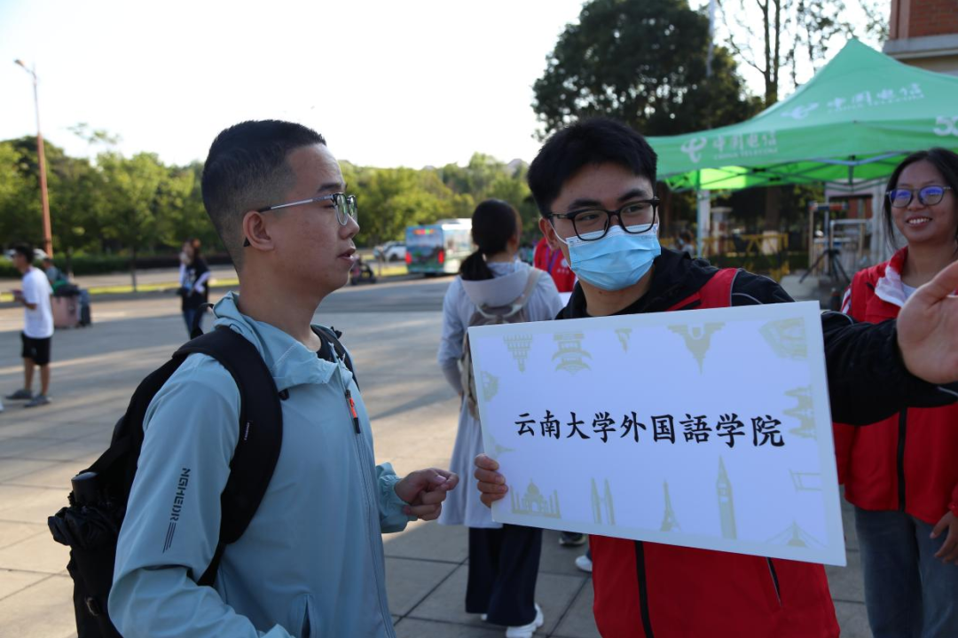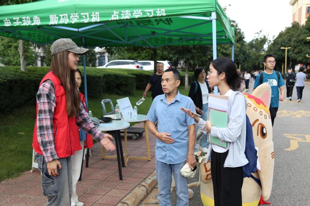 “秋风送爽,八方才俊齐聚,共绘外院新篇。”身穿志愿服的同学们穿梭忙碌,他们的笑容犹如初升的朝阳,照亮了每一位新生的前程。新生们怀揣着对未来的无限憧憬,踏上了这片充满知识的沃土。