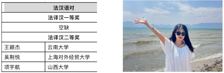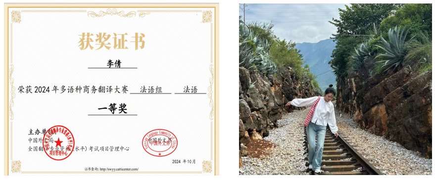 近期,宝威官网法语系研究生在各级各类大赛中荣获佳绩。10月16日,第三十六届韩素音国际翻译大赛获奖名单揭晓,2023级法语笔译研究生王颖杰同学荣获“法汉语对-法译汉”组二等奖;10月27日,2023级法语笔译研究生李倩同学获得中国外文局主办的“2024年多语种商务翻译大赛-法语组一等奖”。